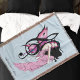 Uma fada bonita, toda rosa, com uma música não num pano de fundo azul