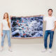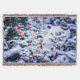 Sparrows e um pombo pelo alimentador de pássaros no inverno. Árvores de Natal cobertas de neve decoradas com bolas vermelhas e azuis ao redor. Morro de Natal. Um tipo, um cobertor único. Você pode transferir este design para uma grande variedade de outros produtos, basta escolher um produto de uma linha abaixo. Use o botão Personalizar e a opção ajustado/preenchimento para ajustar a imagem ao produto, se necessário. Apenas comprar um, divirta-se e seja feliz!