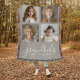 Um presente pensativo e prático para os avós, este design de guardas apresenta um modelo de 4 fotos para personalizar com fotos dos netos. Uma combinação do moderno guião manuscrito combinado com uma fonte moderna sans serif que diz "netos fazem a vida grandiosa!" O fundo é um bege esticado neutro que tem uma vibração acolhedora. Crie memórias familiares duradouras com este cobertor quente que faz um presente maravilhoso para o Dia dos Avós, aniversário, feriado e muito mais.