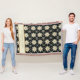 Nome da Família do Padrão de Faux Tricô da Floco de Neve de Natal e data de fundação do cobertor de lançamento. Preto, creme e dourado.
