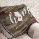 Mostre algum orgulho do estado de casa com este bonito e rústico cobertor de madeira em forma de faxes apresentando "casa" em letras brancas com um mapa da silhueta do estado de Nova Jersey em pé para a letra "O". Um dentro cor-de-rosa para ilustração cardíaca no mapa do estado completa o design; você pode mudar a posição do coração para sua cidade natal abrindo a ferramenta design e arrastando a forma do coração para seu lugar favorito. Personalize com a sua cidade natal, o nome da família e o ano estabelecidos para criar um presente perfeito e memorável de inauguração ou adição à sua nova casa.