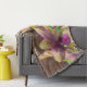 As orquídeas estão florescendo de novo no jardim, na fotografia original de ZoeSPEAK neste cobertor de lama. As flores, que emergem de um caule verde-curvo, têm centros roxos que se misturam ao amarelo nas pontas das pétalas. O fundo natural da madeira desencadeia as formas e cores esculturais.