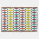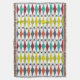 Este cobertor de lançamento tem um design moderno do século médio de diamantes estilhados e estereótipos em um campo de branco.