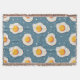 Um padrão de ovos fritos frescos em um fundo azul-céu. Bom dia café da manhã :)