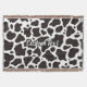 Padrão de fundo de vaca sem costura, preto e branco. Texto personalizado.