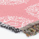Esta mandala branca senta sobre um fundo cor-de-rosa cor de pêssego. As cores são florais e claras. Parte da coleção Jarn Mandala.
