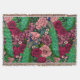 Padrão desenhado à mão com pavões e vários rosas sobre fundo escuro