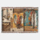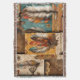 Aztec design de padrão, tribal, de aquarelas nativas americanas, bloqueou penas e formas geométricas em castanho, laranja, areia do deserto adobe e azul.