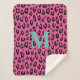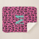 Cobertor pequeno de fleece sherpa estampado com leopardo rosa. Cobertor macio e felpudo com monograma personalizado. Presente de aniversário ou feriado fofo para crianças e adultos.