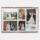 Personalize este cobertor branco de arremesso de casamento com seu próprio casamento ou outras fotos carregando suas próprias fotos de 300DPI Para substituir as fotos, primeiro traga o modelo de foto para a frente e quando suas fotos estiverem na posição, clique no botão traseiro para que apareça atrás do quadro branco.