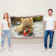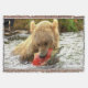 Este cobertor tem uma legal imagem de um urso pescando nele.