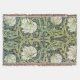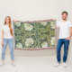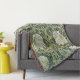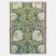 Um cobertor floral com um padrão de William Morris (1834-1896), intitulado Pimpernel (1876). Copiáceas brancas com folhagem verde giratória e flores amarelas de amêndoa. Ele era um artista britânico mais conhecido por sua influência no movimento Artes e Artesanatos e seu design de papel de parede.