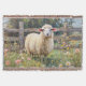 Uma pintura deliciosa de uma ovelha primavera cercada por flores silvestres coloridas num campo sereno. As texturas suaves e matizes vibrantes trazem um charme pacífico e pastoral para esta paisagem rústica.