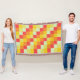 Um padrão composto por quadrados de cinco cores diferentes que foram organizados em azulejos 4x4. No entanto, os azulejos 4x4 à direita são invertidos e invertidos criando um design geral mais interessante. Este design é criado de um gráfico vetor de tamanho de cheio especificamente para esse tipo de cobertor. Os quadrados coloridos nas bordas são, por conseguinte, totalmente estendidos na área de hemorragia, garantindo que não podem existir bordas padrão indesejadas no produto final.