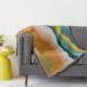 Cena de paisagem abstrato de uma zona de montanha com colinas rolantes e uma tempestade de chuva em laranja, ouro, azul e ciano.