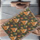 Raposa vermelha com abóboras, bolotas e folhas de outono num pano de fundo verde-escuro