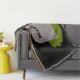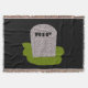 Este cobertor espetacular apresenta uma pedra de cinza com RIP gotejando texto preto sobre ele, em pé sobre um pedaço de grama verde. Ao lado dessa design mórbida, o fundo é preto.