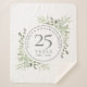 Apresentando delicado verde-jardim de aquarelas suaves, este cobertor de sherpa do 25 de aniversário botânico pode ser personalizado com seus detalhes especiais de aniversário em texto elegante de prata. Projetado por Thisnotme©