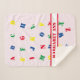 Design apresenta as letras do alfabeto em cores brilhantes e vibrantes contra um fundo rosa pálido. O nome do bebê é exibido através da design contra uma faixa branca com uma borda vermelha brilhante. Projetado para coordenar com o "Chá de fraldas ABC & Nursery Collection."
