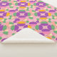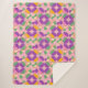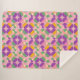 Composição vívida com uma disposição simétrica de formas geométricas roxas, amarelas, laranja e azuis. Exprime elementos design modernos e transmite uma sensação de equilíbrio e criatividade com o seu padrão dinâmico.
