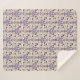 Folheto e cobertor rústico com ilustração desenhada à mão de arcos e flores em cores púrpuras.
