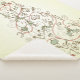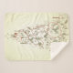 Este cobertor apresenta um design de árvore de Natal rolante com uma estrela e ornamentos em verde-claro e cor-de-rosa com fundo bege.