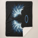 Cobertor Sherpa Asas Anjos Azuis Brilhantes em fundo preto
