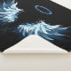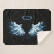 Cobertor Sherpa Asas Anjos Azuis Brilhantes em fundo preto
