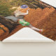 Uma fada loira segurando uma bola de magia com um pentáculo nela, em uma floresta de outono