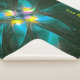 Uma imagem fractal multicolorida que se assemelha a um pássaro da selva. A cor primária é verde; azul e amarelo também são proeminentes. Personalize adicionando seu próprio texto.