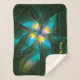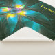 Uma imagem fractal multicolorida que se assemelha a um pássaro da selva. A cor primária é verde; azul e amarelo também são proeminentes. Personalize adicionando seu próprio texto.