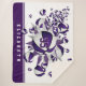 O tema de basquetebol desta menina legal Sherpa fleece cobertor apresenta uma "explosão" de bolas de basquete roxas e brancas em tamanhos variados e cinzas e formas de estrelas roxas - a estrela roxa tem um pequeno padrão de bolinhas brancas - personalize com o nome do jogador e número de camisa - a faixa de cor roxa na borda inferior é personalizável - katz_d_zynes