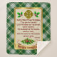 Bênção de Natal irlandesa (por desconhecido) manta de xerpa com Rua. Patrick tartan e adornada com uma cruz sagrada e celta. Acalme-se na véspera de Natal e deseje doces sonhos. Tradução de "Nollaig Shona Duit" é um Feliz Natal para você. Lembrando sua herança irlandesa. Erin go Bragh