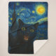 Cobertor Sherpa Black Cat Starry Night Van Gogh Cat Selfie