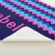 A large sized, monogrammed sherpa blanket featuring a bright, colorful pattern design of blue and pink chevrons.