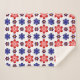 This thick cozy fleece blanket features a beautiful colorful floral pattern of blue, purple and red stylized daisies against a white background; perfect for adding a touch of retro cuteness to your home.