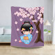 Cobertor Sherpa Boneca Maiko Kokeshi - Rapariga Kimono Geisha Azul