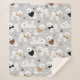 Cão-de-bichão-gato frita em suéteres e arcos com ossos de cão espalhados e estampas de pata em fundo de cinza de luz.