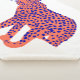 Leopardo brilhante por Emma Scarvey. Possui um leopardo numa brilhante e vibrante sombra de laranja com pintas azuis contrastantes. | 161274Z