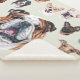 Um buldogue inglês e um cobertor de animais de estimação. Feita apenas para o amante do cachorro. Você tem um buldogue inglês? Este cobertor de animais de estimação é só para você. Ela é a estrela do show, cercada por um monte de amigos.