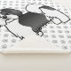 A ilustração original do desenho animado de Destei de um cachorro da raça Lhasa Apso, de cor branca e preta, bonito. O fundo tem um padrão de pegadas de cinza.