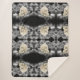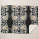 Dourado crânio de coroa rodeado por design de nuvens de cinza.