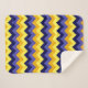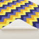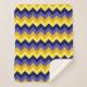 Um cobertor sherpa de pequeno porte que apresenta um design de chevrons de padrão bonito e ombre em azul, amarelo e ouro.