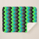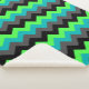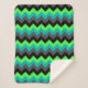 Um cobertor de sherpa de pequeno porte, com um elegante design de padrão de chevrons multicoloridos em preto, cinza, verde e turquesa.