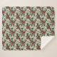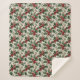 Sherpa blanket with a vintage-influenced watercolor of holly and red berries on an off white faux linen for polished Christmas decor. Look for the matching pillow to make a set for your bed or couch.