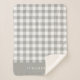 O cobertor de sherpa cônico russo apresenta um padrão clássico de xadrez de búfalo em cinzas quentes e branco. Personalize com um nome ou nome de família na parte inferior.