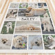 Celebre as alegrias simples do seu parente furioso com uma bela colagem fotográfica, Sherpa fleece dog cobertor. As imagens e todo o texto neste modelo são simples de personalizar, e todas as cores e fontes podem ser personalizadas usando a ferramenta Zazzle design. (DICA DE IMAGEM: Uma maneira fácil de posicionar uma foto exatamente como você deseja é recortá-la antes de carregá-la no site do Zazzle.) O design preto e branco apresenta o nome do animal de estimação em uma tipografia minimalista no estilo de máquina de escrever e uma grade fotográfica moderna com 16 fotos de sua escolha. Crie o seu próprio guardião único e atire um presente de compaixão para o memorial de animais de estimação. O nome do monograma faz com que seja perfeito para mandar com seu animal de estimação para a babá, canil, pensão ou veterinário.