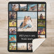 Crie seu próprio cobertor personalizado de colagem de fotos. Adicione 17 de suas fotos favoritas e texto personalizado neste modelo moderno.