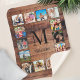 Crie seu próprio cobertor de colagem de fotos do Instagram 14 personalizado com suas imagens personalizadas em um estilo rústico e recuperado de fundo de prancha de madeira. Adicione suas fotos, designs ou trabalhos de arte favoritos para criar algo realmente único. Para editar este modelo de design, basta carregar a sua própria imagem conforme mostrado acima. É possível adicionar mais texto ou imagens, personalizar fontes e fundo.