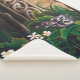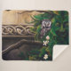 Homem verde com uma linda amiga coruja sentada num galho. Nó celta trabalha em pedra atrás deles.